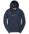 Superdry men’s Hyper Pop hoodie from the Orange Label range. This overhead hoodie features a drawstring adjustable, crossover hood, a front pouch pocket with two side zip fastenings and a rubber Superdry logo on the chest. The hoodie also has pops of colour on the drawcord and logo and is finished with a logo tab on the sleeve and a signature orange stitch in the side seam.